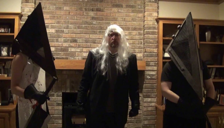 The red light of Silent Hill appears- for the third time, Linkara has entered The Otherworld. After insulting its time-consuming puzzles into submission, he ends up back at his own house, to his astonishment. Whately and his two Pyramid Heads appear, and Whately and Linkara talk, with the former revealing the book was made to convert him to their cult, and the latter knowing they worship The Entity. In response, Whately sends his two minions to attack.