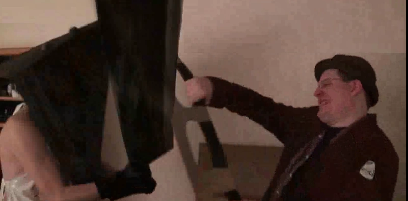 Linkara manages to stumble away...directly into Mechakara, who resumes his horrendous beatdown. Linkara manages to get out his Power Morpher, healing and powering him up. In the middle of it all, Pollo appears, and has a brief dilemma- not solved by their friendship, however, but the offer of a pay raise, his own office, and his own comic review. While Pollo stuns Mechakara, Linkara finishes him off with a blast from the BFG. Though he was in fact teleported away, it makes little difference as Insano shocks him to bits for making him cut his hair.